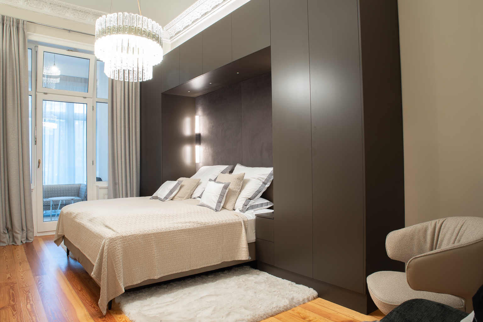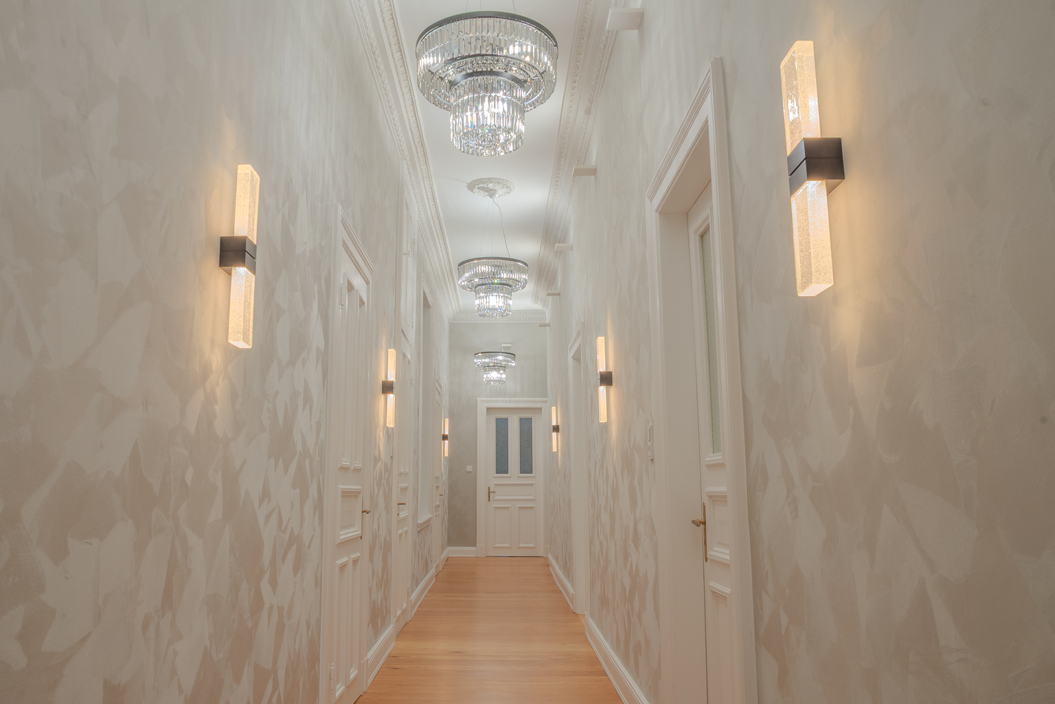 Das nur wenige Schritte von der Alster entfernte, denkmalgeschützte Gründerzeithaus wurde kürzlich behutsam saniert und die Wohneinheiten anschließend als Eigentumswohnungen verkauft. Bei einer dieser exklusiven Wohneinheiten haben wir unseren Kunden bei der Ausschreibung, Vergabe und Bauleitung des geplanten Innenausbaus begleitet. Die anspruchsvoll gestaltete Wohneinheit überzeugt durch ein umfangreiches Smart-Home-System, Bäder mit großformatigen Fliesen und passenden Waschtischen, ein beeindruckendes Beleuchtungskonzept, fein konzipierte Einbaumöbel und exklusive Wandtapeten.