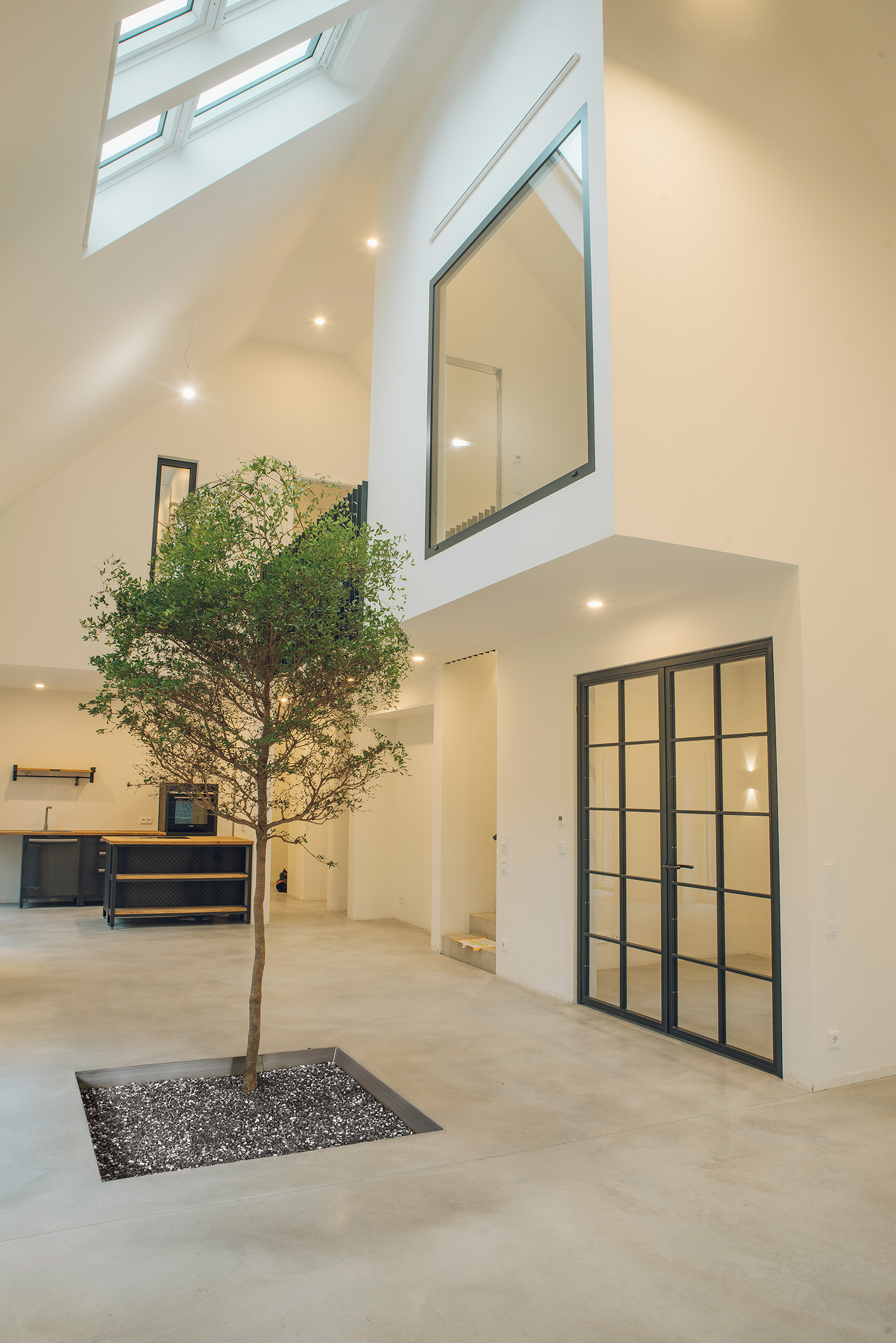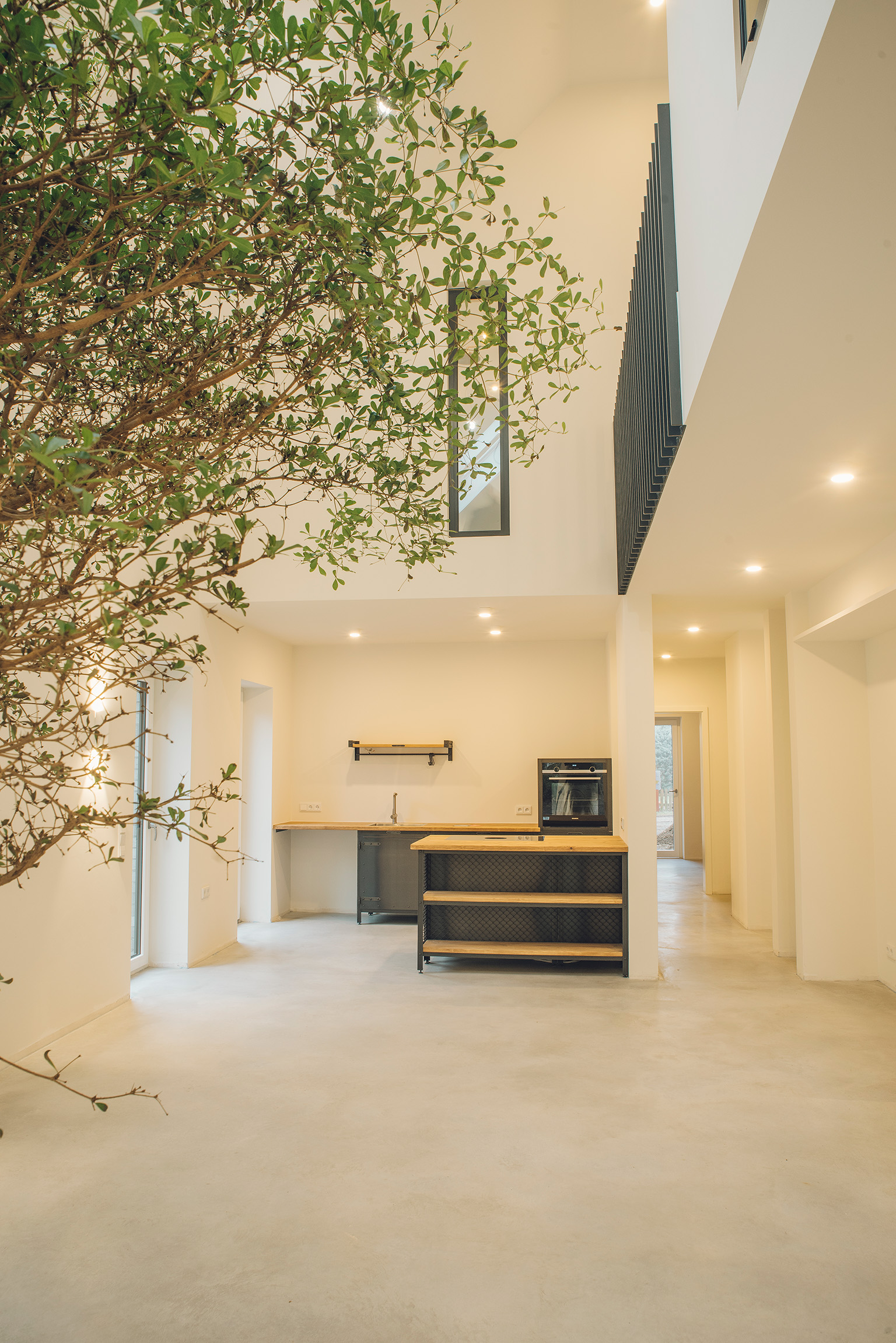 Das neu erbaute Einfamilienhaus verbindet zeitlose Ästhetik mit hochwertiger Materialwahl. Auf einem naturnahen Grundstück entstanden, besticht es durch eine schlichte Fassade und klare Linien – sowohl innen als auch außen. Der Industrial Look mit Sichtestrich und minimalistischem Design unterstreicht den modernen Charakter. Das Herzstück des Hauses bildet der zweigeschossige Wohn- und Essbereich mit Galerie, der ein beeindruckendes Raumgefühl schafft. Besonderes Highlight: Ein lebender Baum im Wohnzimmer bringt die Natur direkt ins Haus und sorgt für ein einzigartiges Wohnambiente.