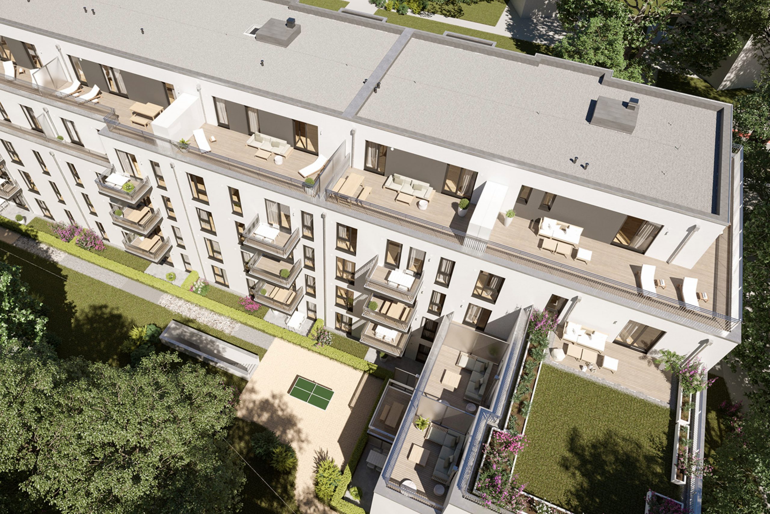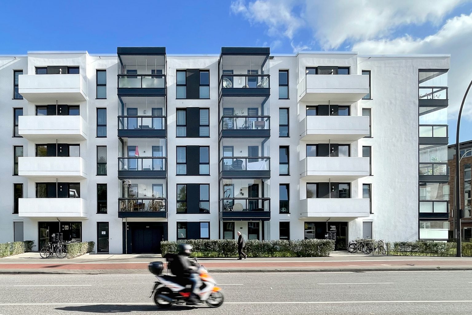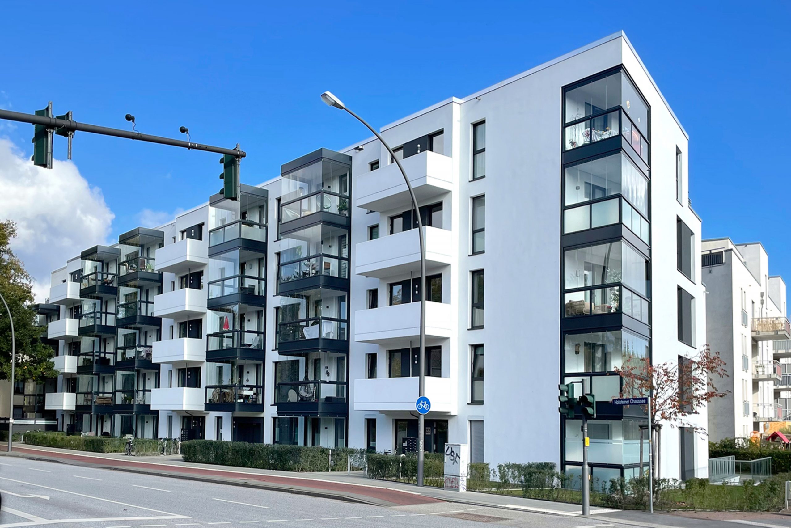 Der moderne Neubau bietet 51 Eigentumswohnungen, die urbanes Wohnen mit hoher Lebensqualität verbinden. Optimierte Grundrisse, zum Teil großzügige Dachterrassen und eine eigene Tiefgarage sorgen für höchsten Wohnkomfort. Dank innovativer Schallschutzmaßnahmen genießen die Bewohner auch an der stark befahrenen Straße eine ruhige und entspannte Atmosphäre. Ein durchdachtes Wohnkonzept, das Design, Funktionalität und Lebensqualität vereint.