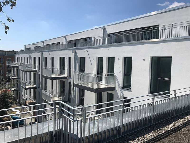 In Hamburg wurde ein Mehrfamilienhaus für 51 Parteien, samt Tiefgarage realisiert. Die Erwerber konnten aus 3 Ausstattungspaketen für Oberflächen und Sanitärausstattung wählen.