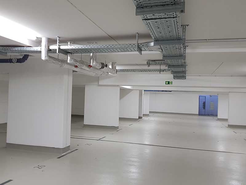 Tiefgarage mit PKW-Fahrstuhl, Wohnungswasserstationen